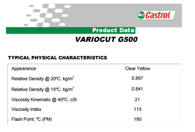 嘉實多Variocut G500已專門挑選的熱穩定的制定