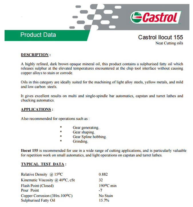 Castrol Ilocut 156深褐色的不透明的礦物油,本產品含有硫化脂肪油
