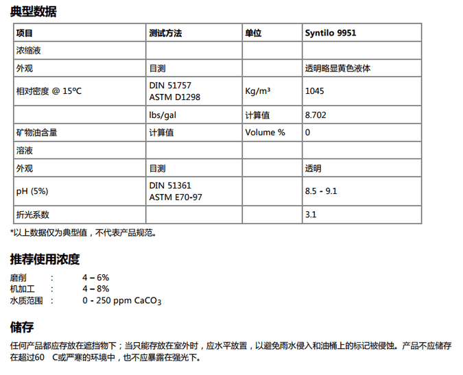 Syntilo 9951 推薦應用于所有的鐵金屬、不銹鋼及合金鋼的磨削及一般加工。