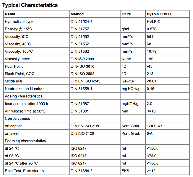 這種高粘度液壓油超過DIN 51524-3為hvlp-d油的要求。優良的粘度-溫度性能