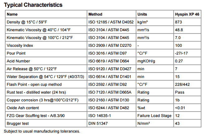 Hyspin XP 46是一種高性能抗磨液壓油的性能滿足要求DIN 51 524部分