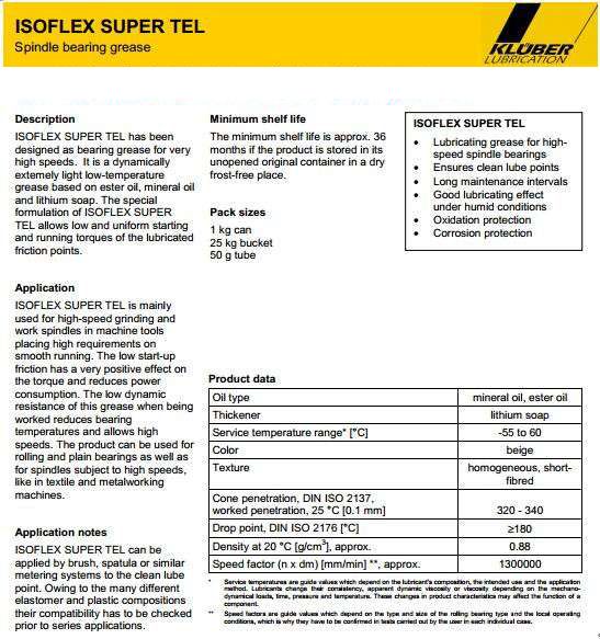 ISOFLEX SUPER TEL被設計為主軸軸承潤滑脂,適用于非常高的速度。 ISOFLEX SUPER是一個動態的,重量極輕的低溫度的基礎上,酯油,礦物油和鋰皂基潤滑脂。 特殊配方的產品,使小和不斷的啟動和運行時刻,油的摩擦。