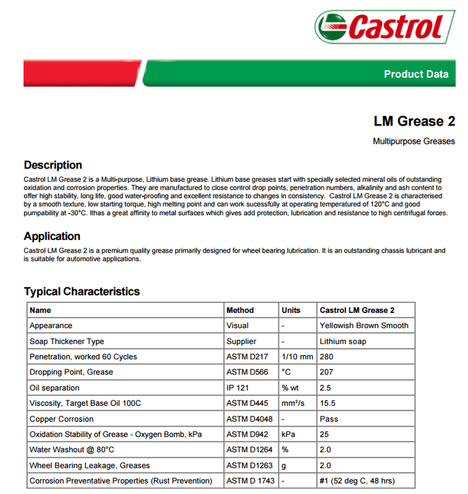 提供高穩定性,使用壽命長,防水性好,耐一致性好。嘉實多潤滑脂的特點是LM 2