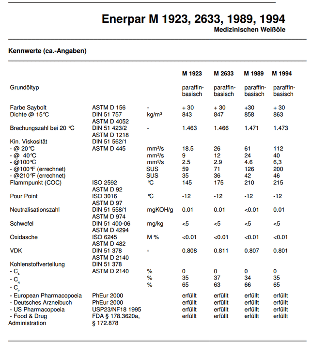 enerpar M是一系列非常精致的液體不同粘度的石蠟。他們是無色的,