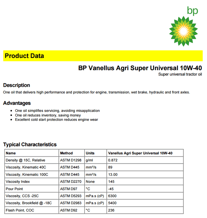 一種提供高性能和保護(hù)的發(fā)動機(jī)、變速器、濕式制動器、液壓和前車軸的油。
