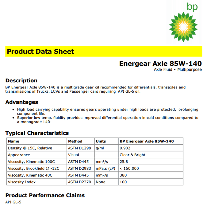 BP Energear Axle是一個多級齒輪油推薦用于差速器,驅(qū)動橋,