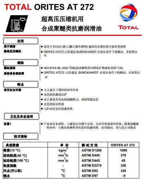 道達爾 超高壓壓縮機用合成聚醚類抗磨潤滑油