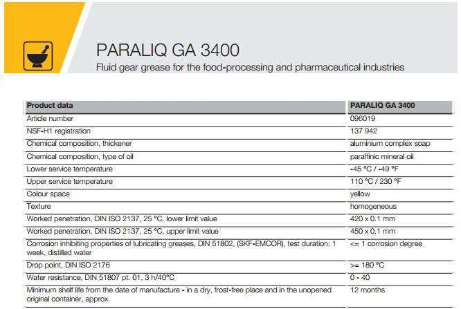 PARALIQ GA 3400的基礎上與一個基本的鋁復合皂的鏈烷烴礦物油。