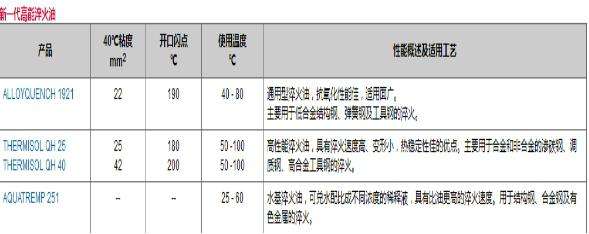 高性能淬火油,具有淬火速度高、變形小,熱穩定性佳的優點。主要用于合金和非合金的滲碳鋼、調質鋼、高合金工具鋼的淬火。