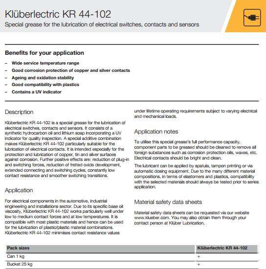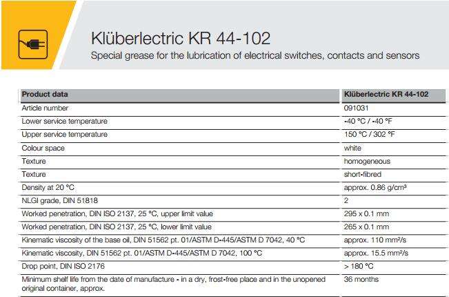 klberlectric KR 44-102是為特殊潤滑脂潤滑