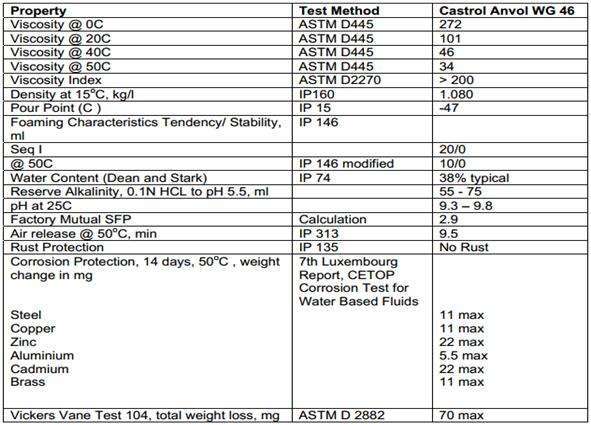 嘉實多Anvol WG 46是HF-C型水乙二醇抗燃液壓液,充分
