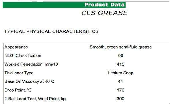 嘉實多CLS潤滑脂是一種半流體(NLGI 00)中使用的極壓潤滑脂