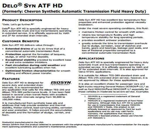 是新產品名稱的合成和重型的自動變速器的流體。