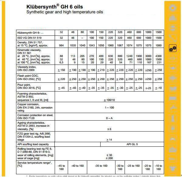 DIN 51517-3的要求,中電的要求。 傳輸與這一要求可能會有所更改,恕不咨詢GH 6油的一般應用上Klubersynth說明。