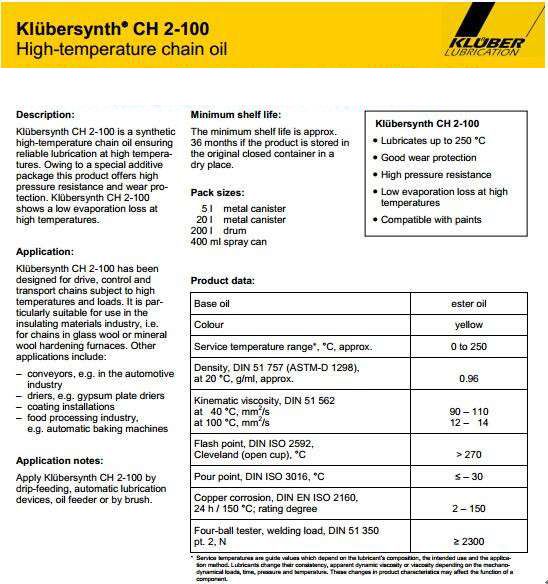 克魯勃CH 2-100是一種人工合成高溫鏈條油潤(rùn)滑可靠,即使在較高的工作溫度。 通過(guò)一個(gè)特殊的組合實(shí)現(xiàn)在KlubersynthCH 2-100較高的抗壓強(qiáng)度和抗磨損保護(hù)。 在高溫下Klubersynth CH 2-100記錄是由低蒸發(fā)損失和高氧化穩(wěn)定性。
