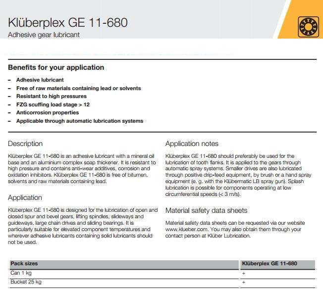 KLüberplex GE 11-680是一種礦物油基和鋁復合皂稠化潤滑油膠粘劑。它是耐高壓、含抗磨添加劑,腐蝕和氧化抑制劑。KLüberplex GE 11-680是瀝青,溶劑和含有鉛的原料。
