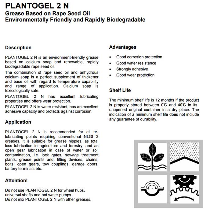 PLANTOGEL 2 N-潤滑需要傳統(tǒng)NLGI 2