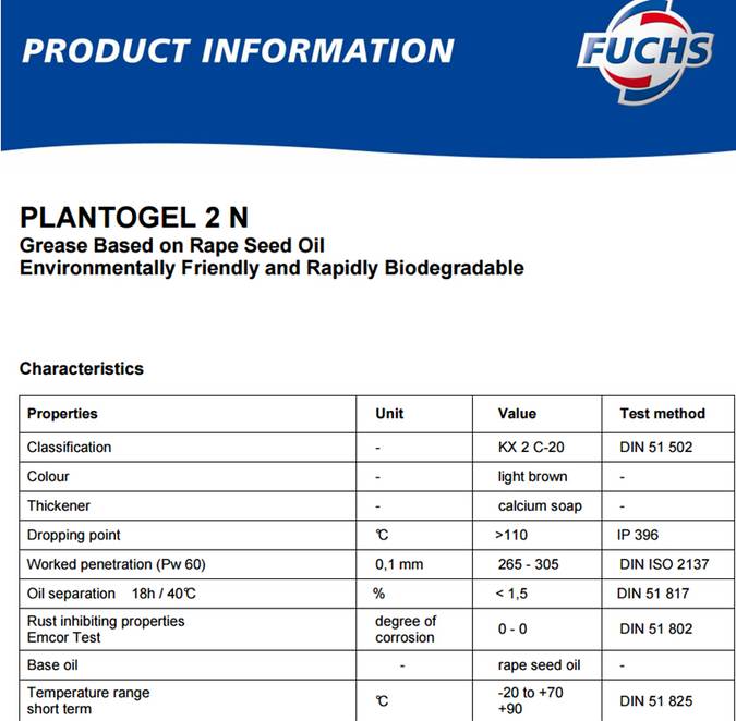 PLANTOGEL 2 S是一種對環(huán)境無害的溢價鋰/鈣皂潤滑脂的基礎上快速生物降解的合成酯。