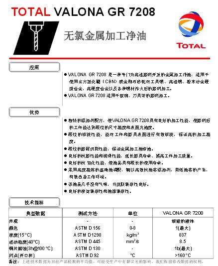 VALONA GR 7208 是一種專門為高速磨削開發的金屬加工凈油,適用于