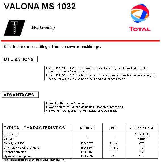 道達爾TOTAL VALONA MS 1032 無氯重負荷金屬加工凈油詳細說明 (瀏覽4829次)