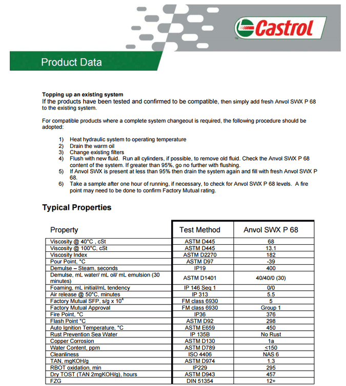 嘉實多Castrol Anvol SWX P 68是一種多元醇酯抗燃液壓液,是工廠共同批準組