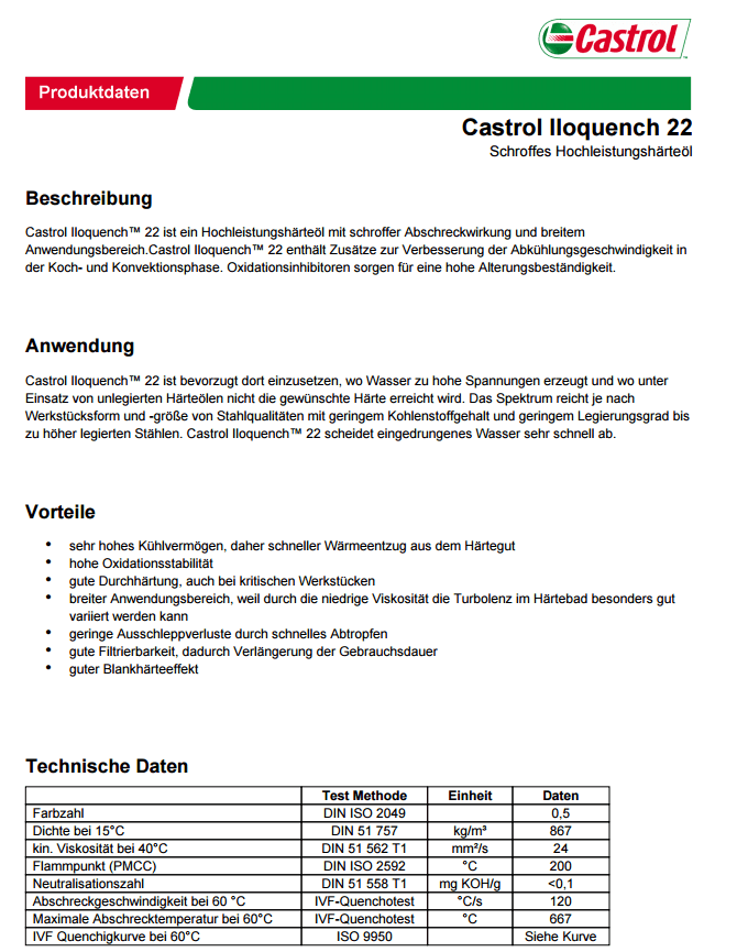 Iloquench 22是一個快速淬火油優質,使更快的冷卻速度比直冷