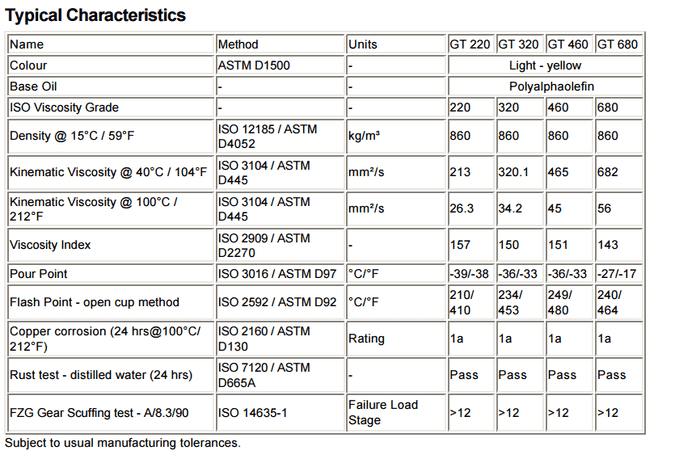 optileb GT齒輪油超過DIN 51517 3部分中的要求。