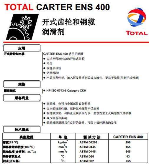 道達爾TOTAL Carter ENS400開式齒輪和鋼纜潤滑劑
