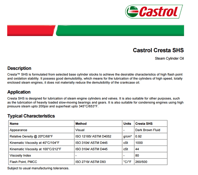 CRESTA SHS是專為蒸汽發動機氣缸和閥門的潤滑。它也適用于其他用途,如