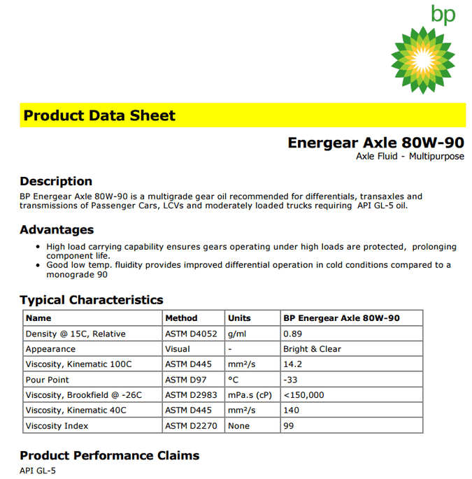 BP Energear Axle是一個多級齒輪油推薦用于差速器,驅(qū)動橋,