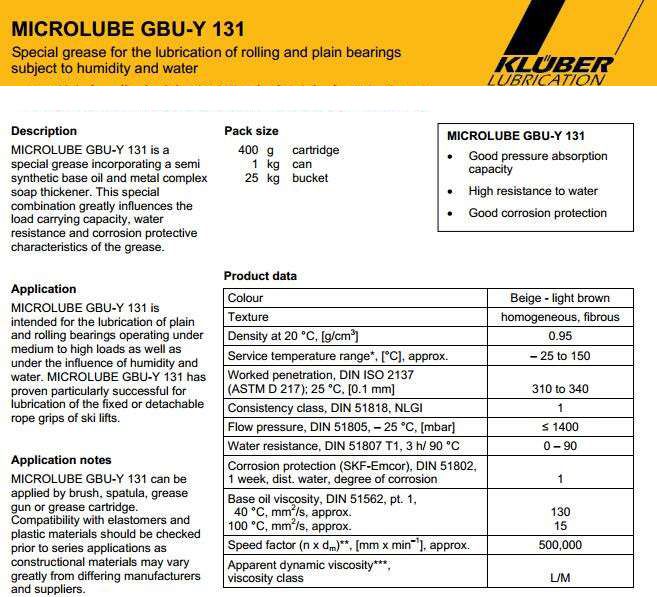 MICROLUBE GBU-Y 131是滾動軸承和滑動軸承潤滑的專用潤滑脂、一種半合成的與一個特殊的金屬復(fù)合皂稠化的基礎(chǔ)潤滑脂。 這是這塊肥肉更高的負載,防水功能,同時還具有良好的抗腐蝕特性。