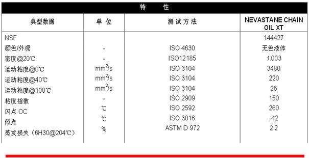 NEVASTANE CHAIN OIL XT使用于低溫(最低0℃)和非常高的溫度,最高可達240℃