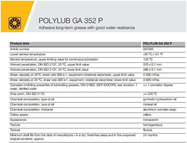 POLYLUB GA 352 P是一個鋁絡合物 - 基于礦物油和合成烴油的潤滑脂。