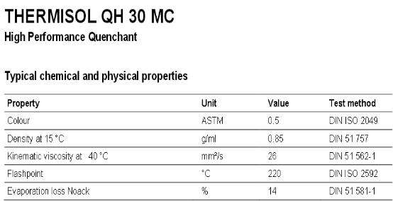 thermisol QH 30 MC是一種高性能淬火油,基于高質(zhì)量的加氫裂化油