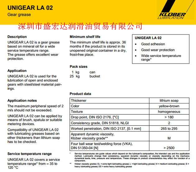 UniGear LA 02是一種礦物油基本齒輪潤滑脂,適用于廣泛的工作溫度范圍。 它有一個非常良好的抗磨損保護。