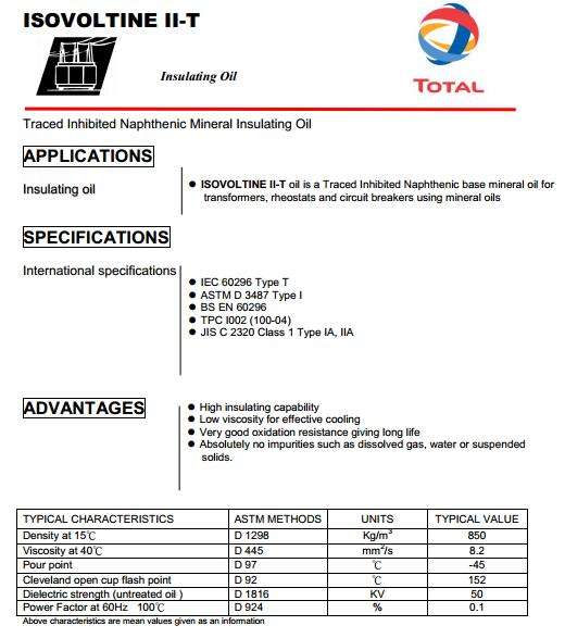 ISOVOLTINE II是一種純粹的非抑制礦物油的變壓器,變阻器