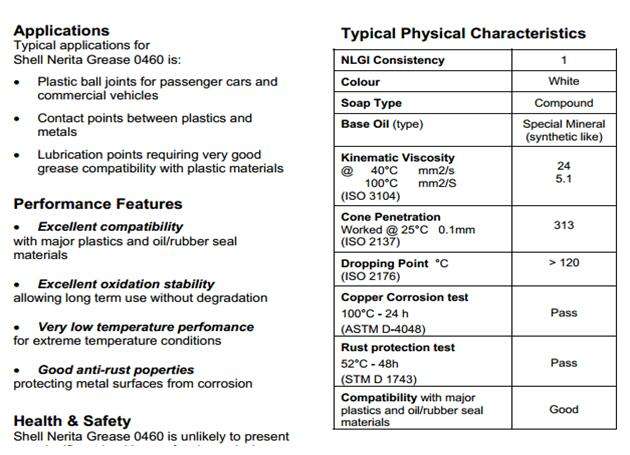 殼牌Nerita潤滑脂0460在懸架系統設計用于塑料球關節的商用車和乘用車。
