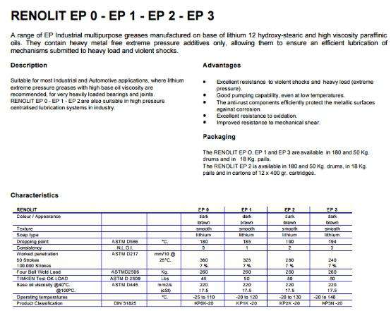 RENOLIT EP系列工業(yè)多用途潤滑脂生產(chǎn)鋰12羥基硬脂酸和高粘度石蠟基