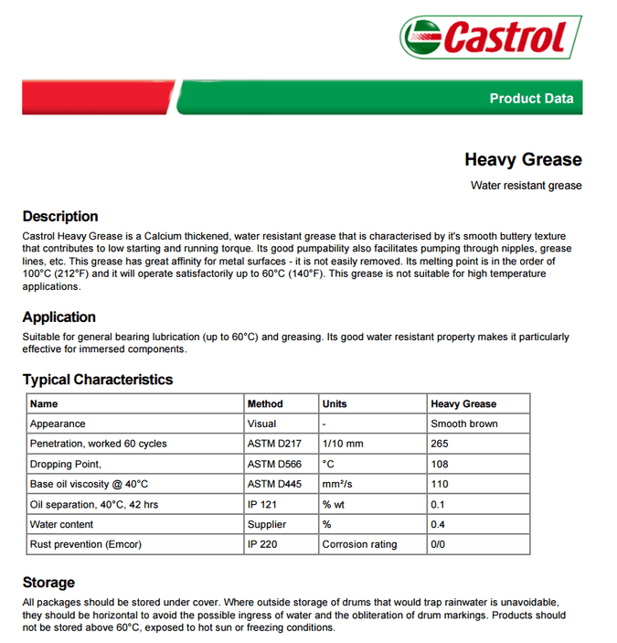 100℃(212°F),它將運行令人滿意高達60℃(140°F)。這種油脂不適合高溫應用.